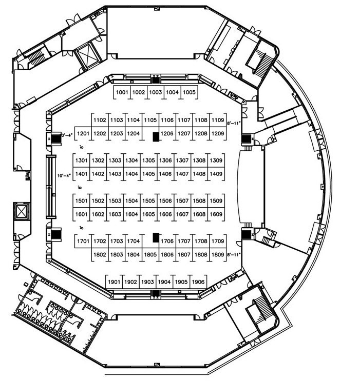Explore the exhibit hall. Hover over a booth to see which organization is exhibiting at the booth.